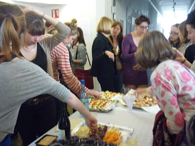 Nous poursuivons avec une exposition de peinture inoffensive dans les locaux d'un dentiste dont le buffet nous remonte un peu le moral. Concurrence nulle et jambon cru très bon. Pain pour se faire des sandwichs. Mais rien à boire.